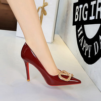 9577-H87 European and American style sexy slim heel pointed high heels women's shallow bow versatile patent leather temperament single shoes