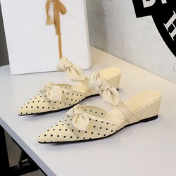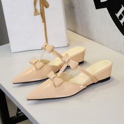 6600-K117 French Fashion V-Buckle Low Heel Pointed Shallow Mouth Casual Versatile Slope Heel Back Empty Rear Tripstrap Single Shoe for Women