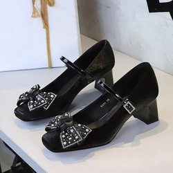 322 Simple Middle Ancient Style Shallow Mouth Square Head High Heels Women's Silk Fine Heels Versatile Non tiring Foot Style High Heels Single Shoes